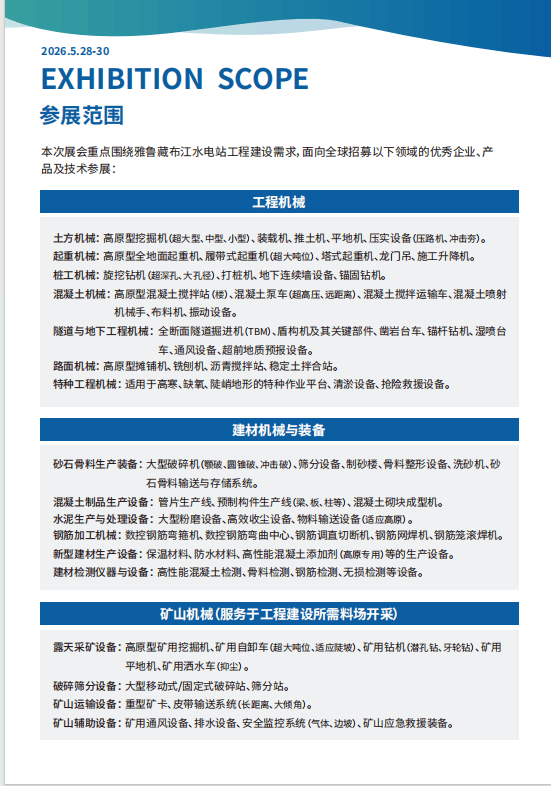 2026中国雅鲁藏布江水电坐工程扶植配备大会,大咖云集,共线雅鲁藏布江水电坐扶植暨工程机械博览会。