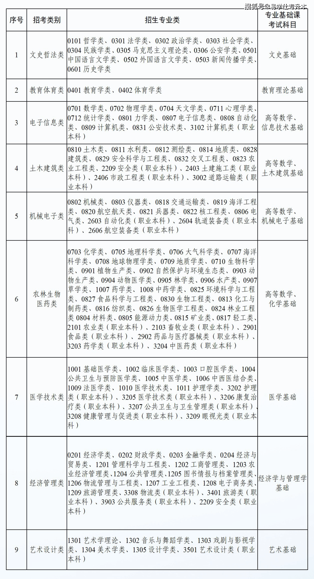 2。测验类别。测验类别包罗文史哲法类、机械电子类、电子消息类、土木建建类、农林生物医药类、医学手艺类、经济办理类、教育体育类、考生选择1个测验类别报名测验。报考本科医学类专业的考生,所学高职(专科)医学类专业名称应取本科专业名称不异(专科西医骨伤专业升本时对应本科西医学专业)。